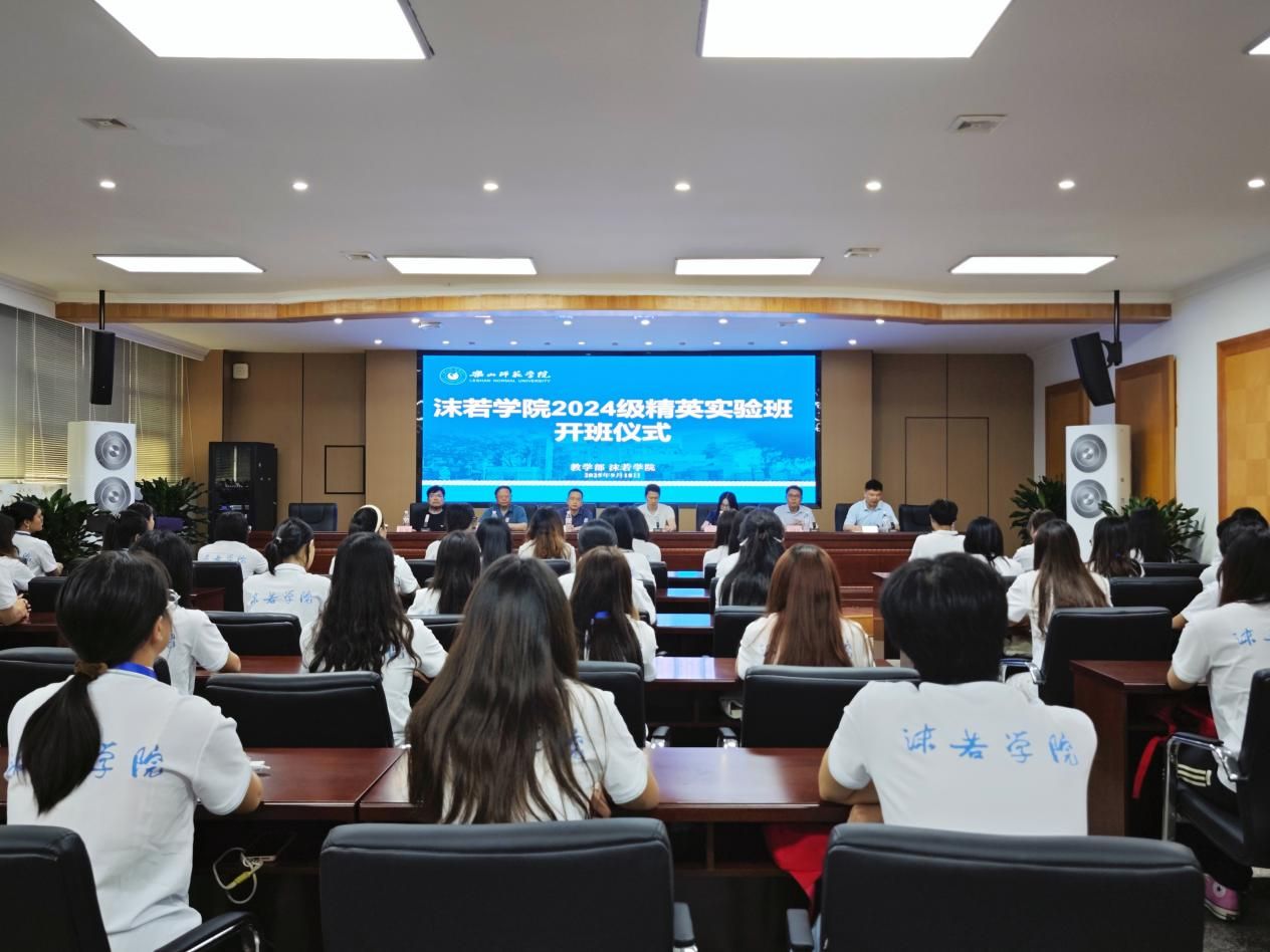 本网讯(文/陈欢 图/杨艾玉 )9月18日下午,沫若学院2024级精英实验班开班仪式在弘毅楼701会议室举行。学校党委常委、副校长汪天飞、教学部部长、各精英实验班导师组组长、2024级全体学员及学院工作人员出席仪式,仪式由沫若学院执行院长李磊主持。